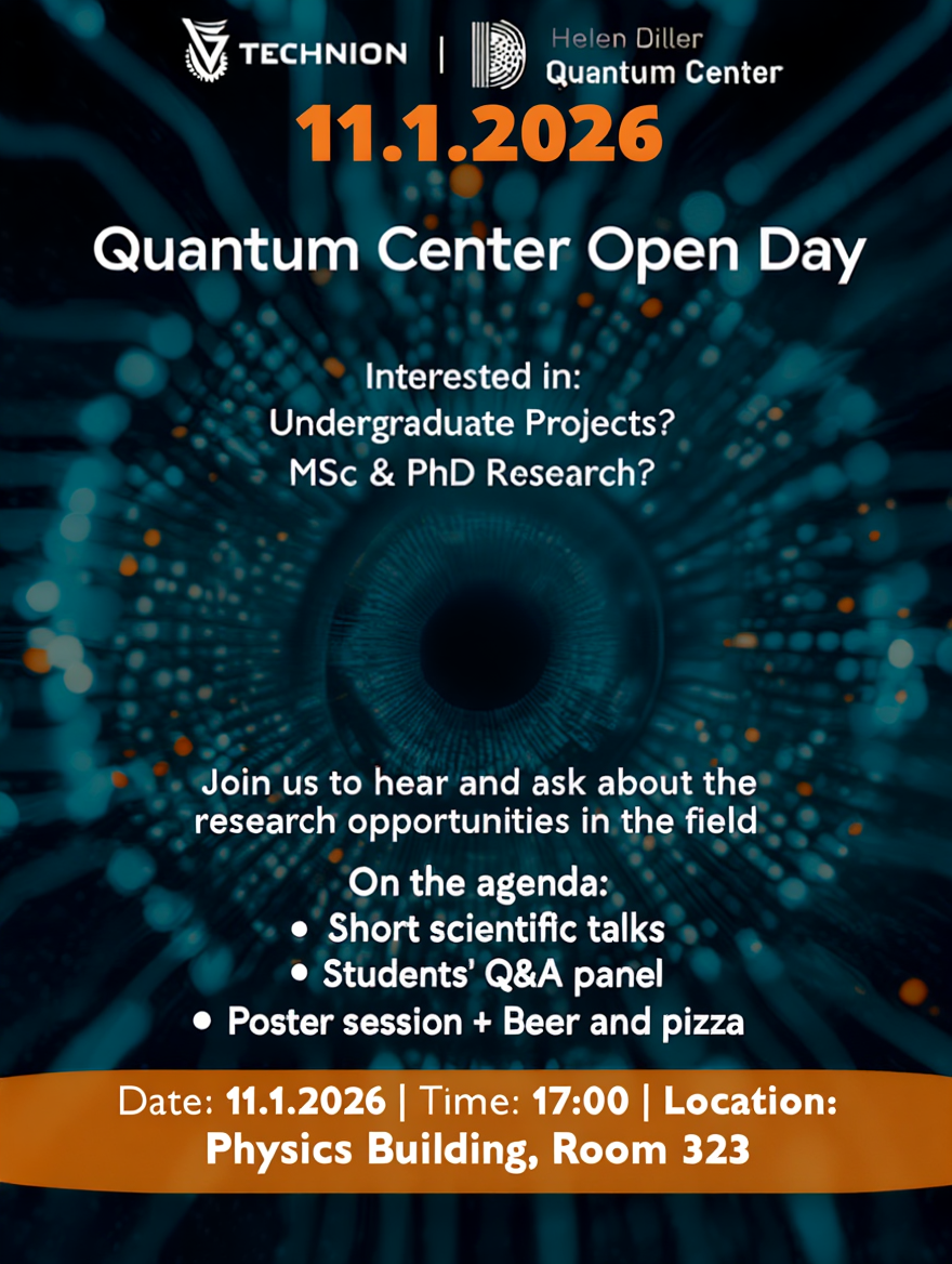 The Helen Diller Quantum Center at the Technion invites you, undergraduate and graduate students, to discover advanced degree options and projects in the fascinating and diverse fields of quantum science.